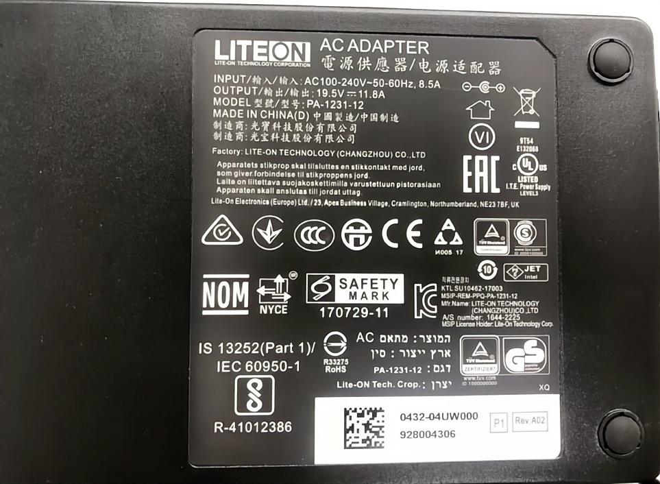 Original 19.5V 11.8A 230W MSI GE62MVR 7RG-036NL Netzteil Ladegerät + Ladekabel